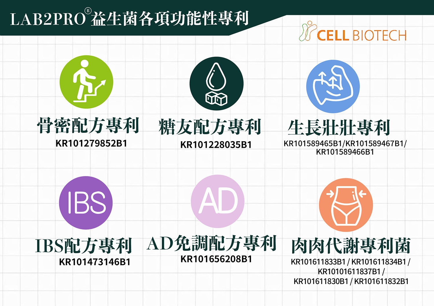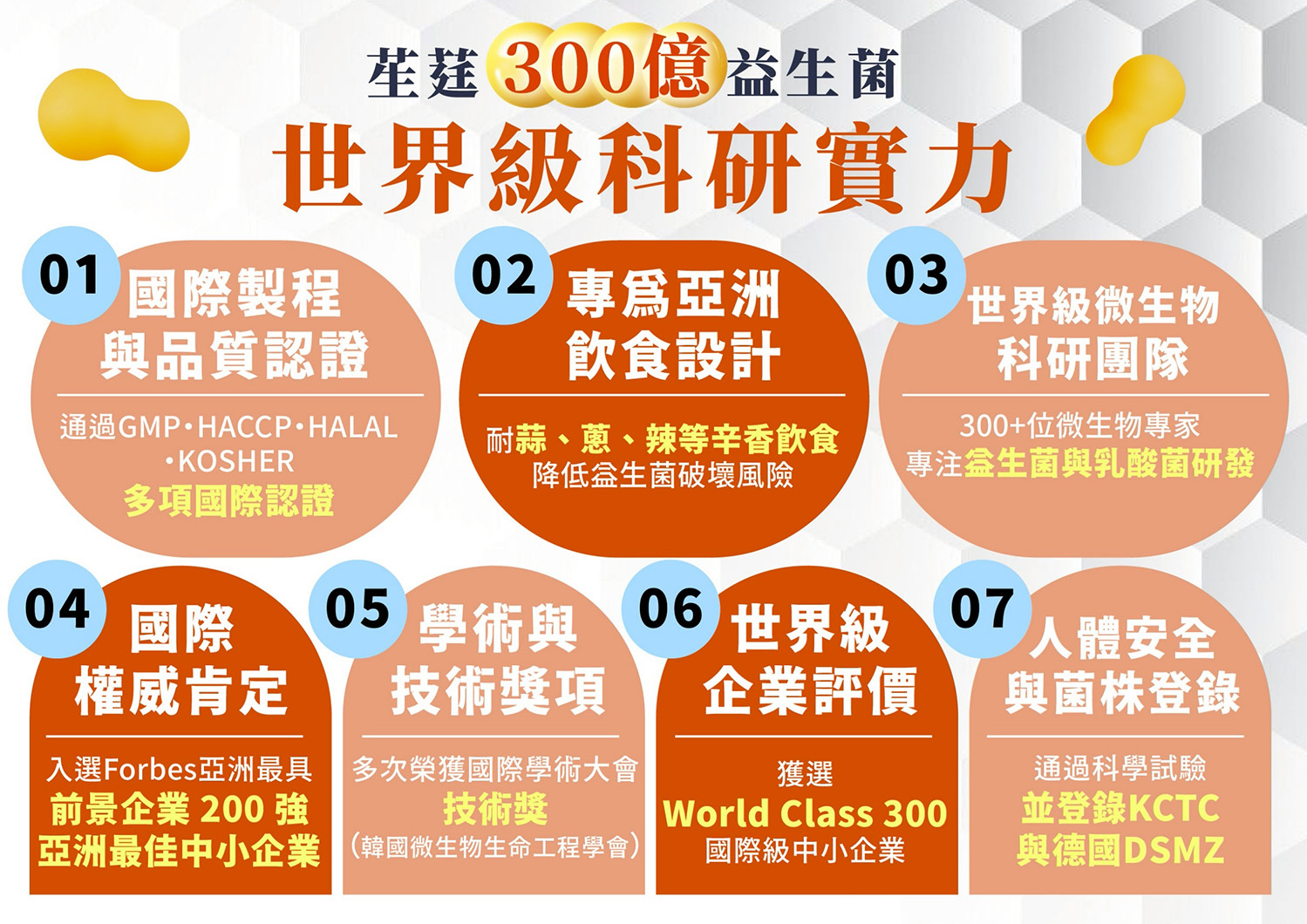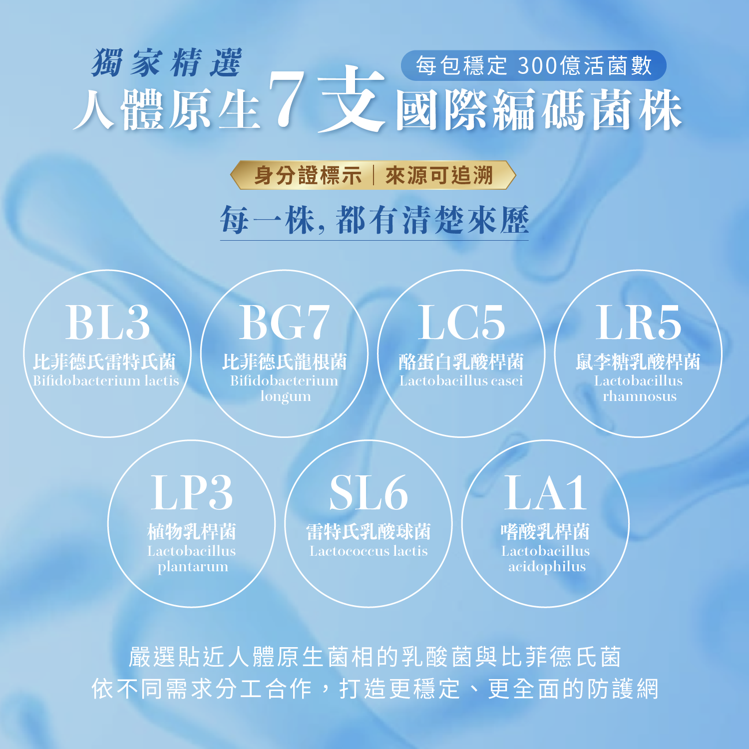 ▸112 張全球專利×10國專利原料大廠:嚴選7大國際編碼專利菌株(BL3、BG7、LC5、LR5、LP3、SL6、LA1)