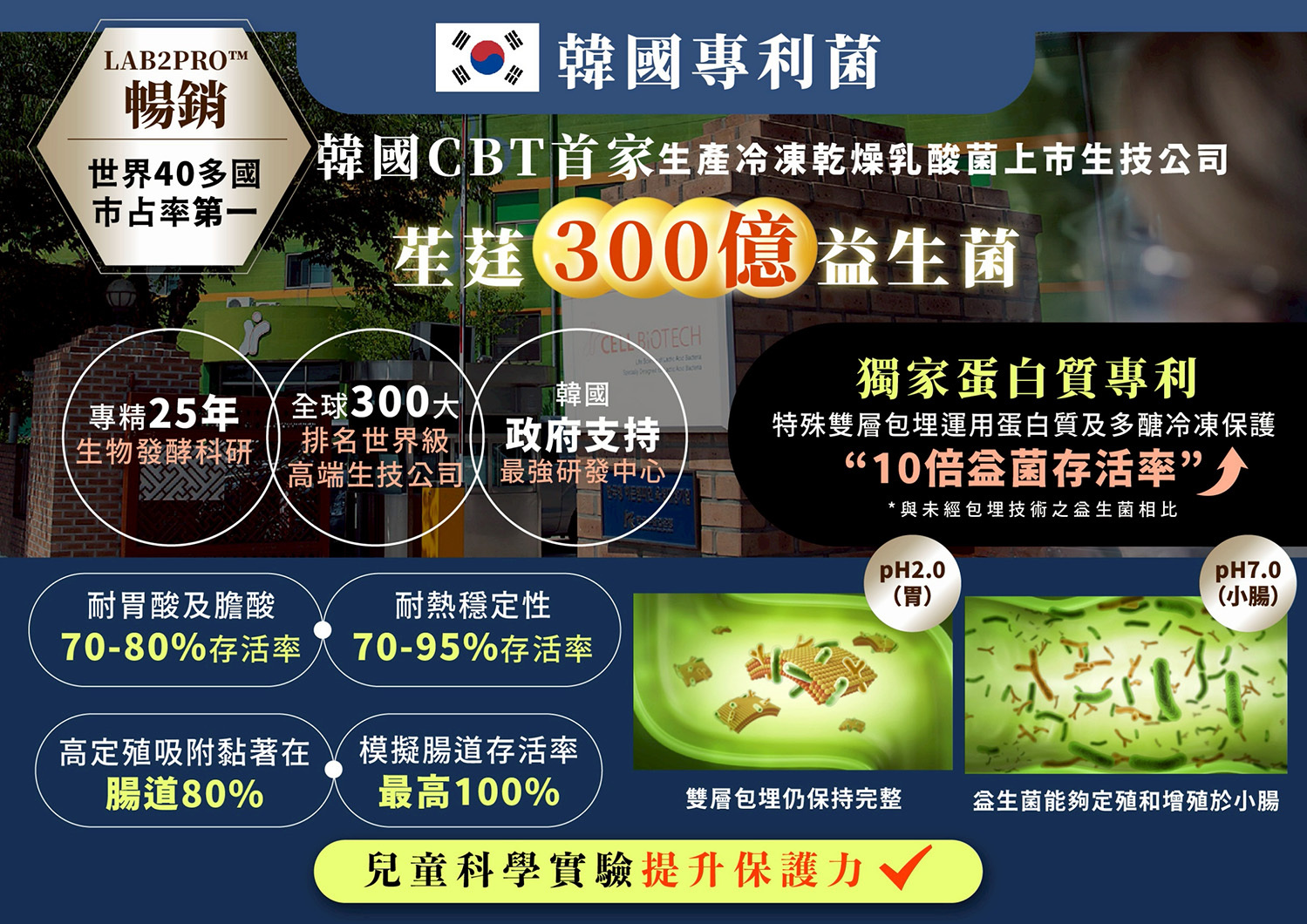 ★韓國政府World Class 300認定×全球市占率第一益生菌平台