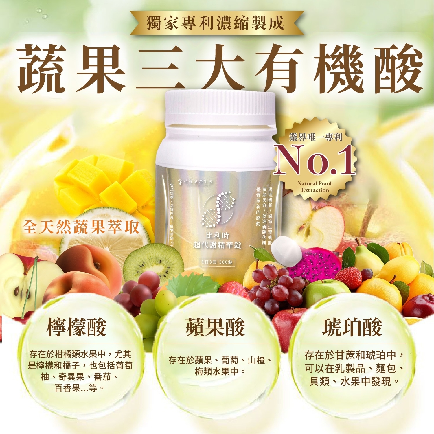▸ 獨家萃取人體必需3大有機酸