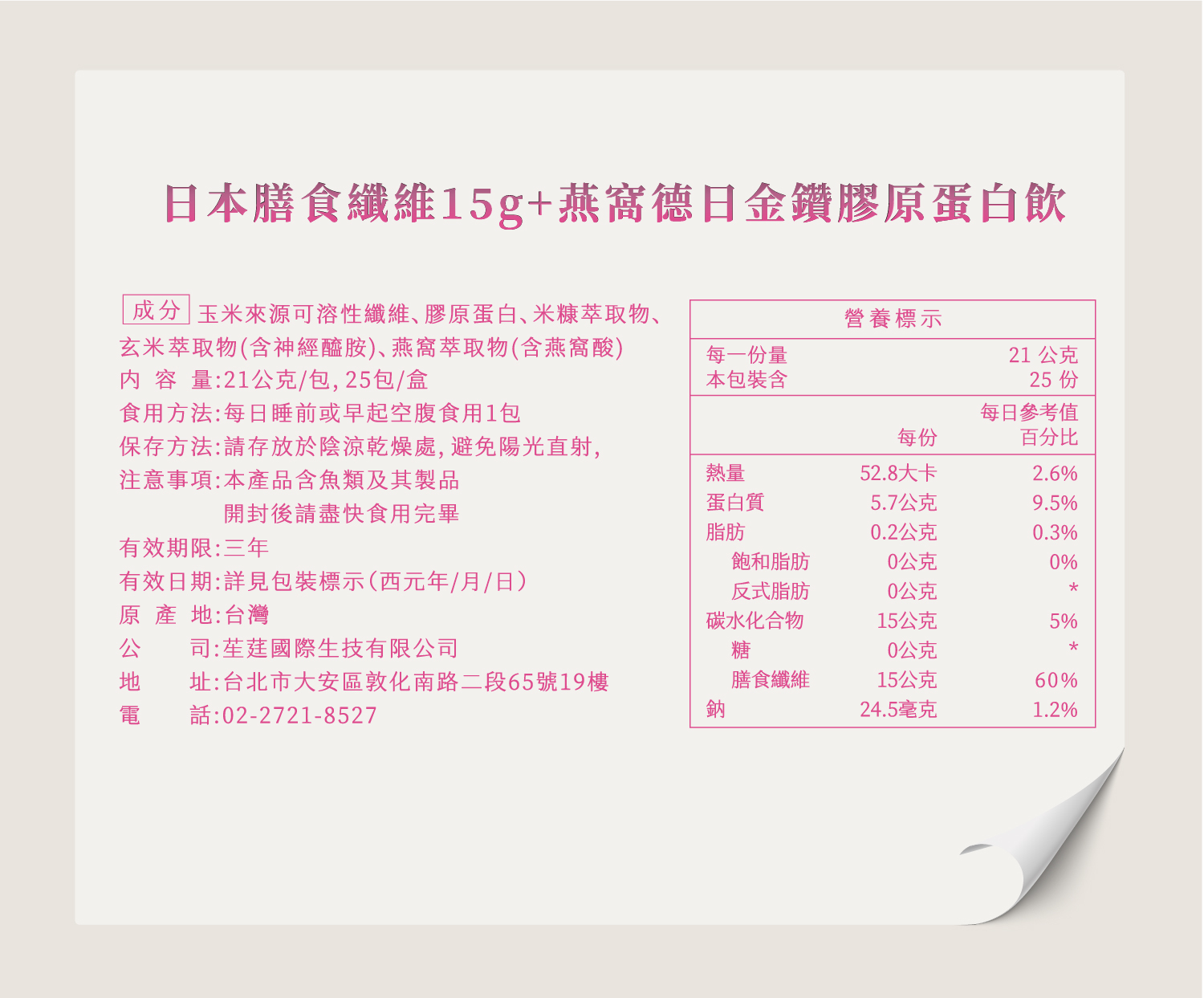 ✅全台最高、每包含「日本專利Fibersol®-2膳食纖維15克」,輕鬆補足成人一日所需25g膳食纖維的60%需求