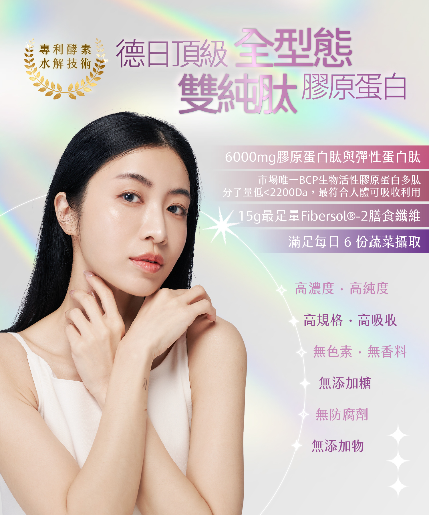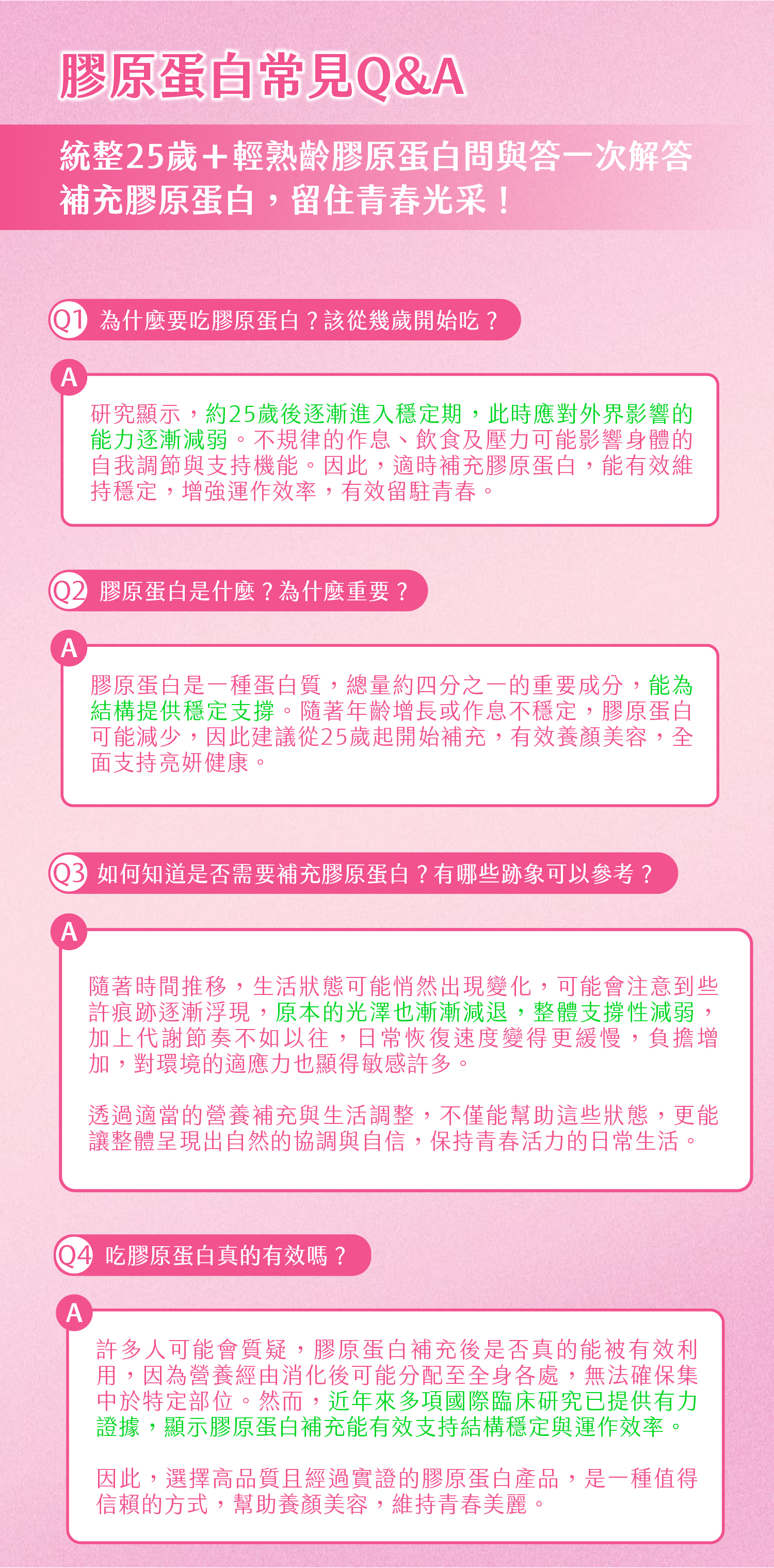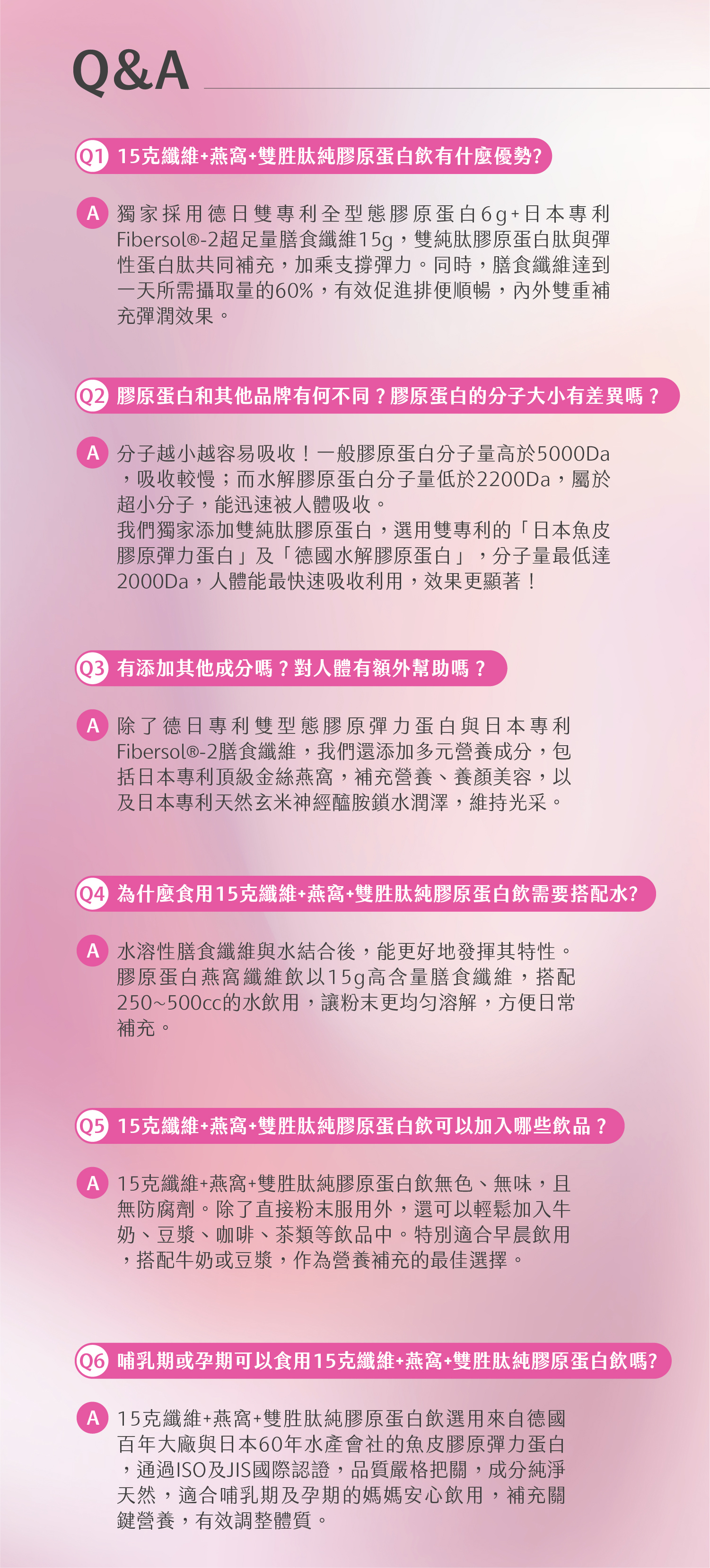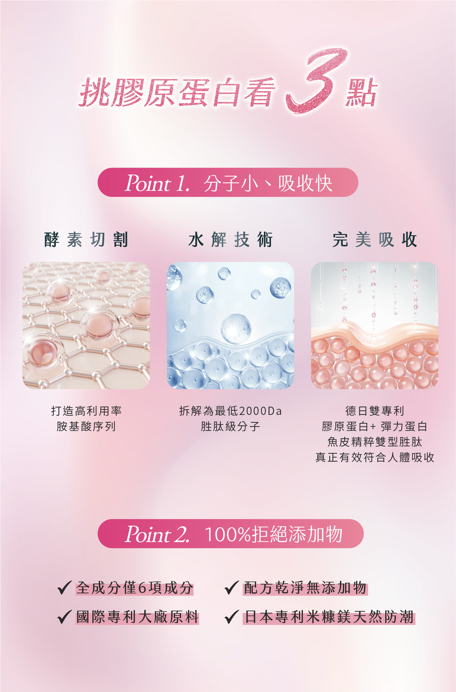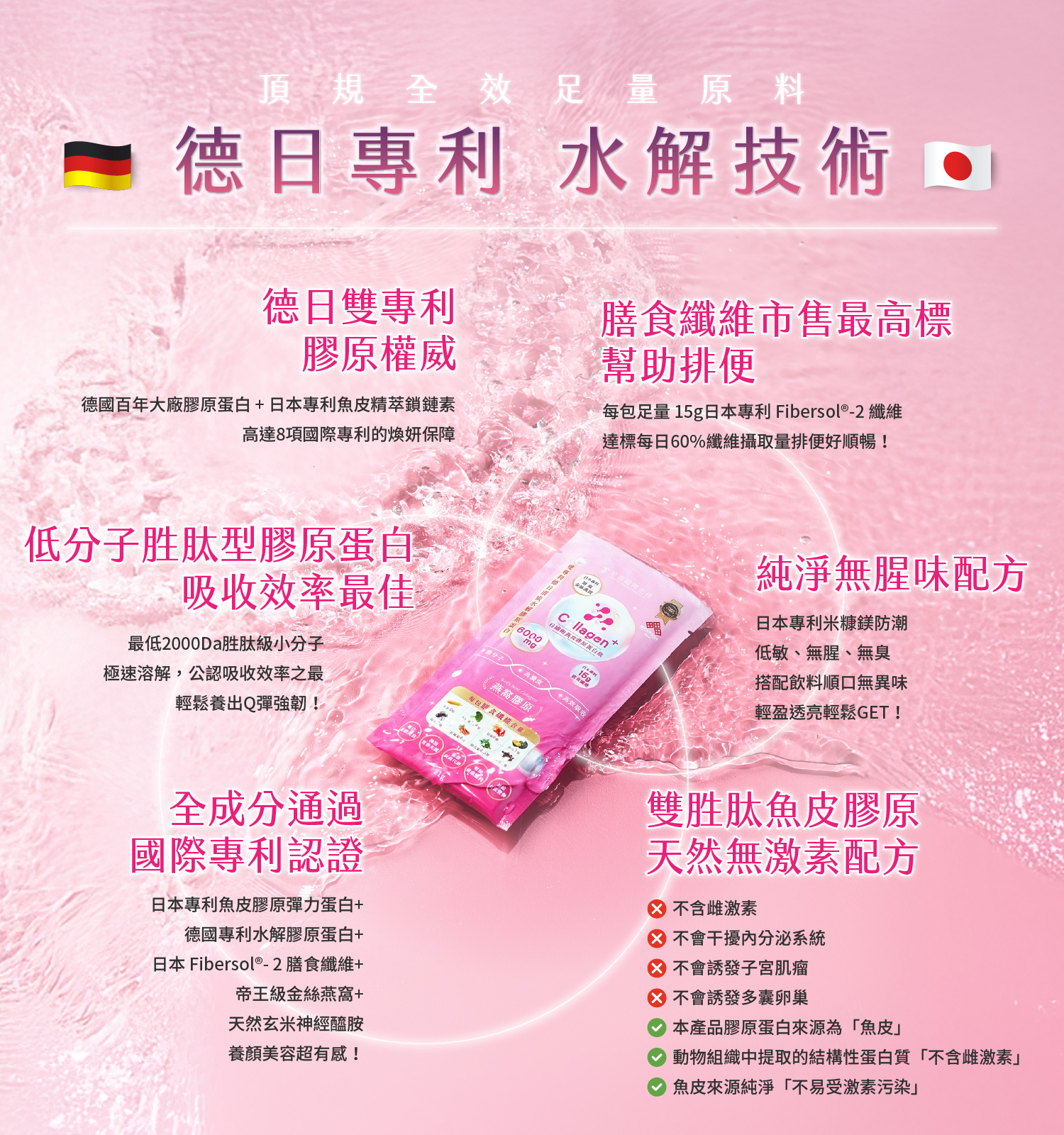 ✅不含人工添加、天然健康,無人工甜味劑、香料色素,口感細膩無腥味,遇水快速溶解好入喉,膠原細小分子「不怕長長荳荳」、「不含雌激素」