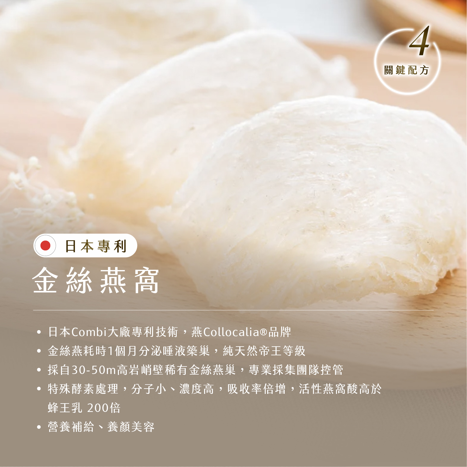 ✅頂級成分「日本專利金絲燕窩」美顏配方