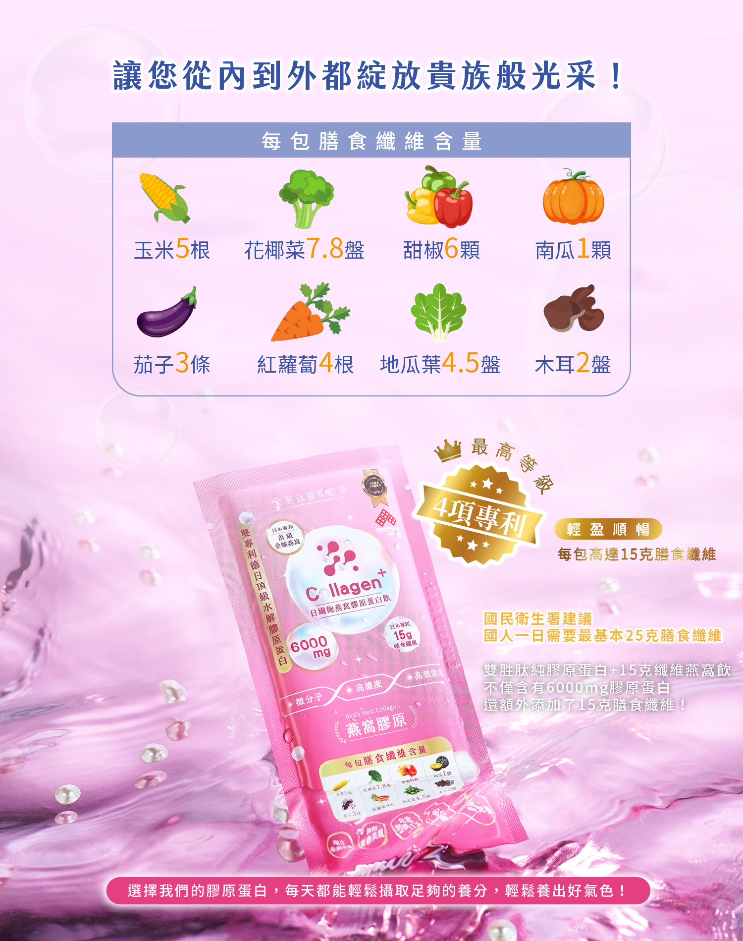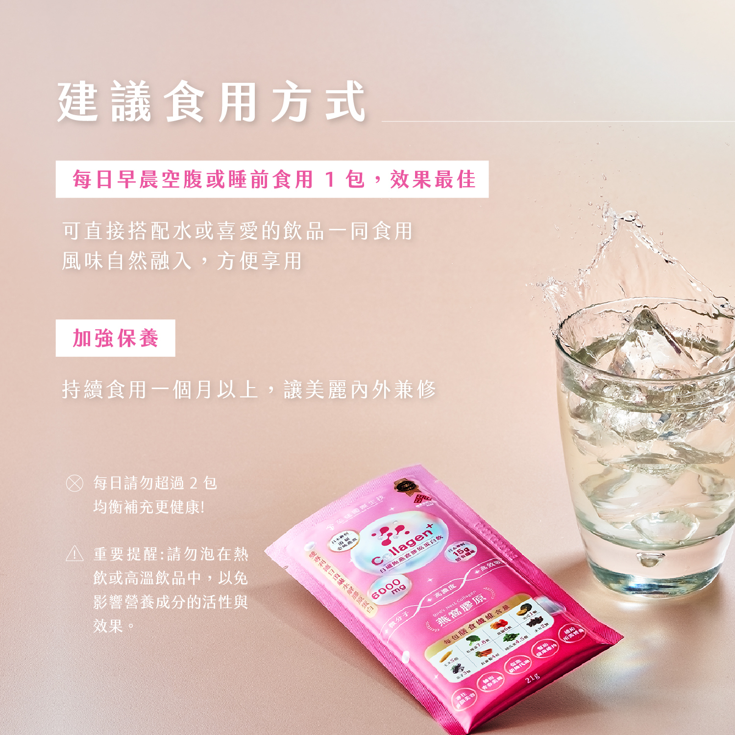 ✅一天一包、達標一日所需,每包膠原蛋白含量6000mg