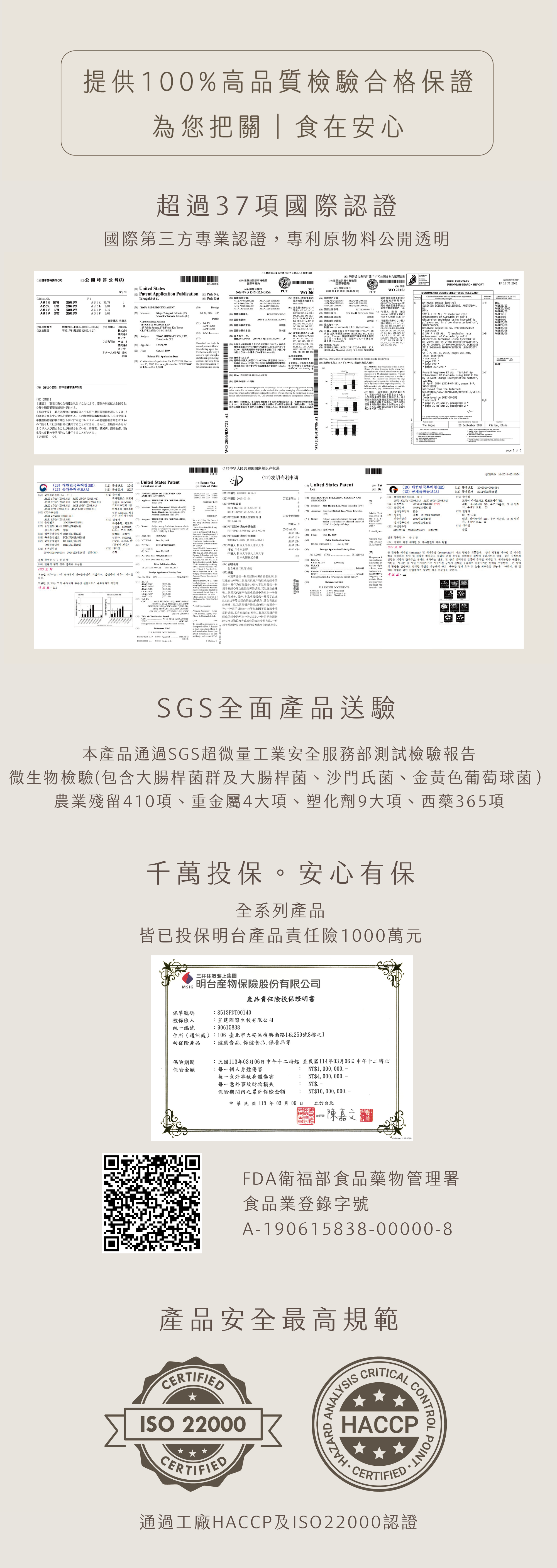 ‣ SGS全面送驗有效成分,通過食品安全最高規範