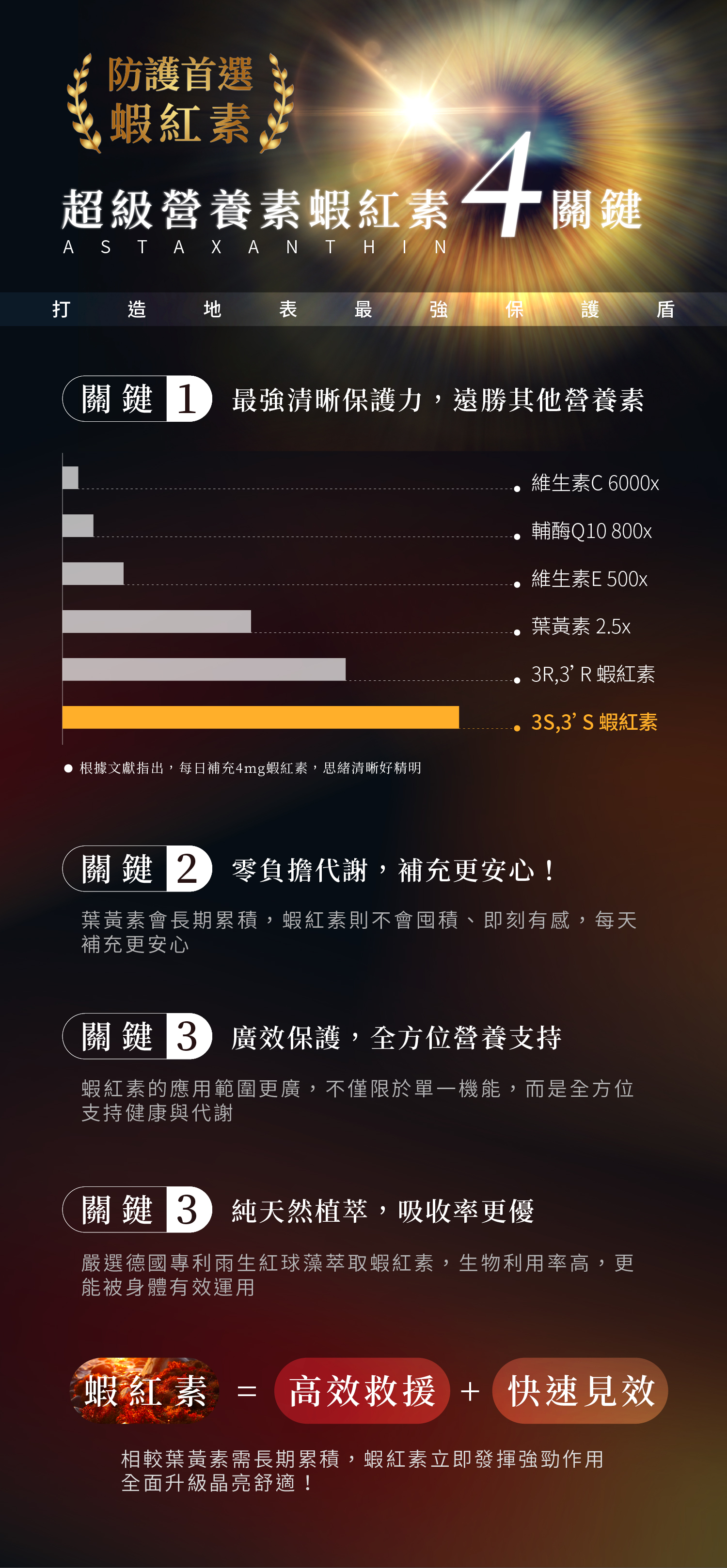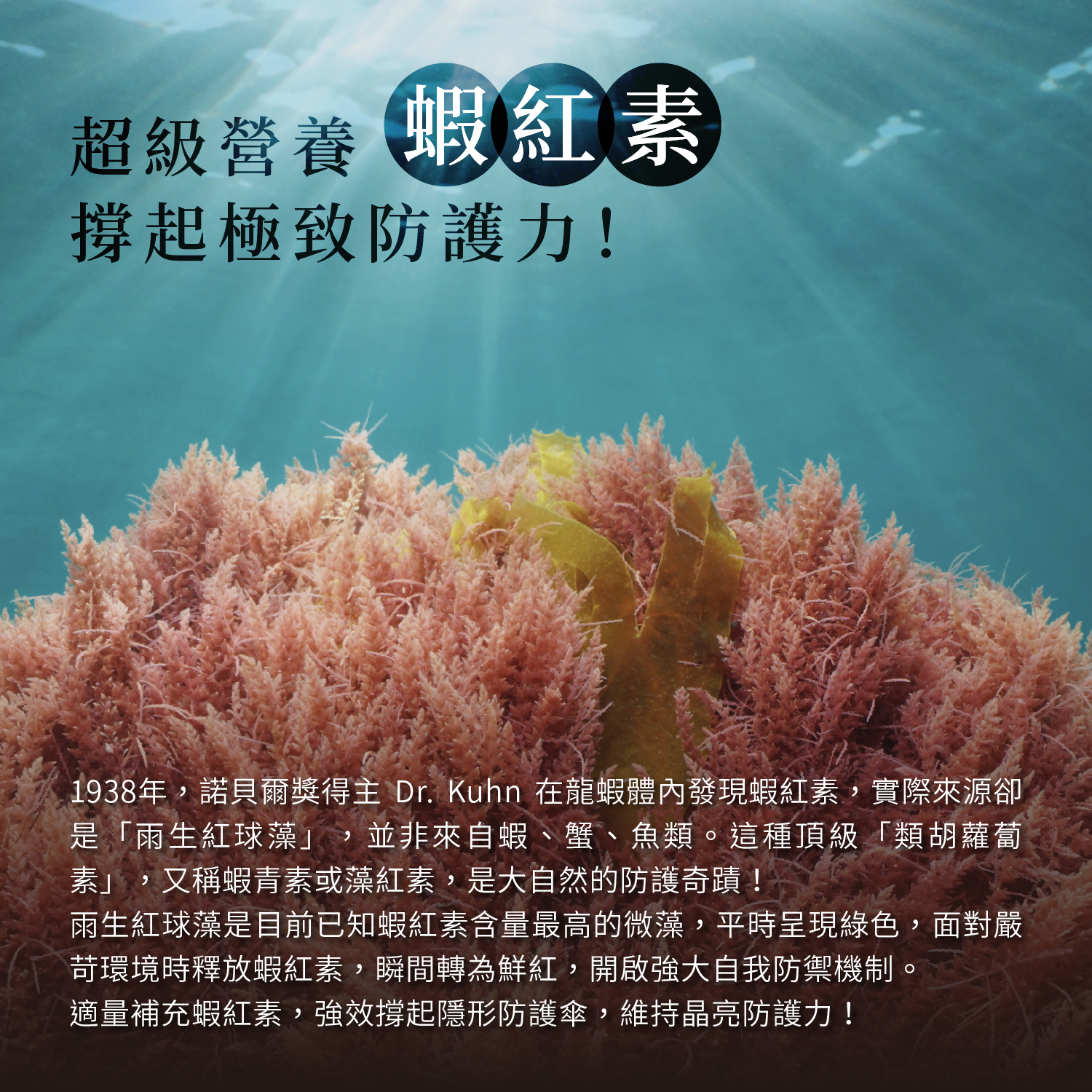 ▸ 德國大廠研製最高規格,市售頂規 4mg 蝦紅素