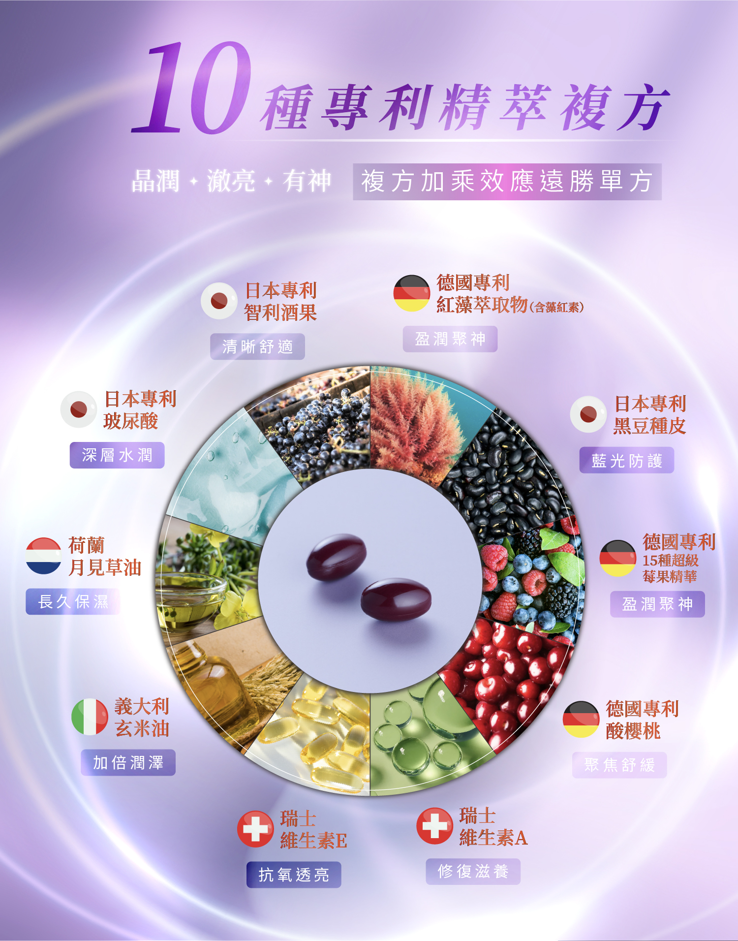 ▸ 業界罕見 10大潤澤晶亮複方,精準補給關鍵營養