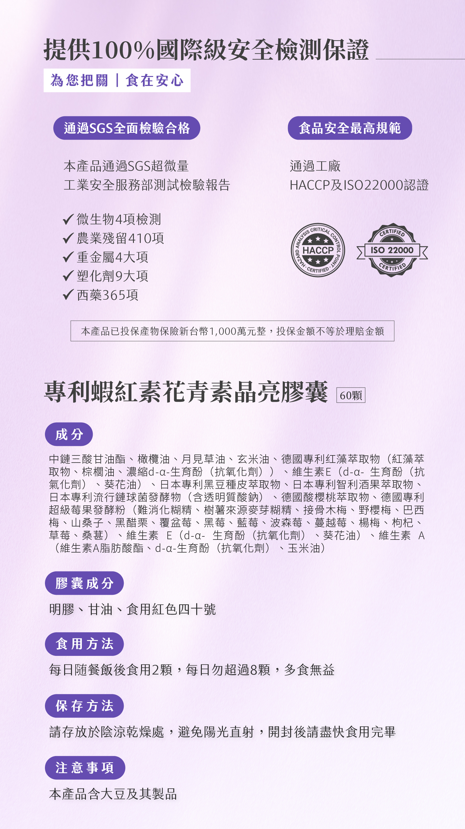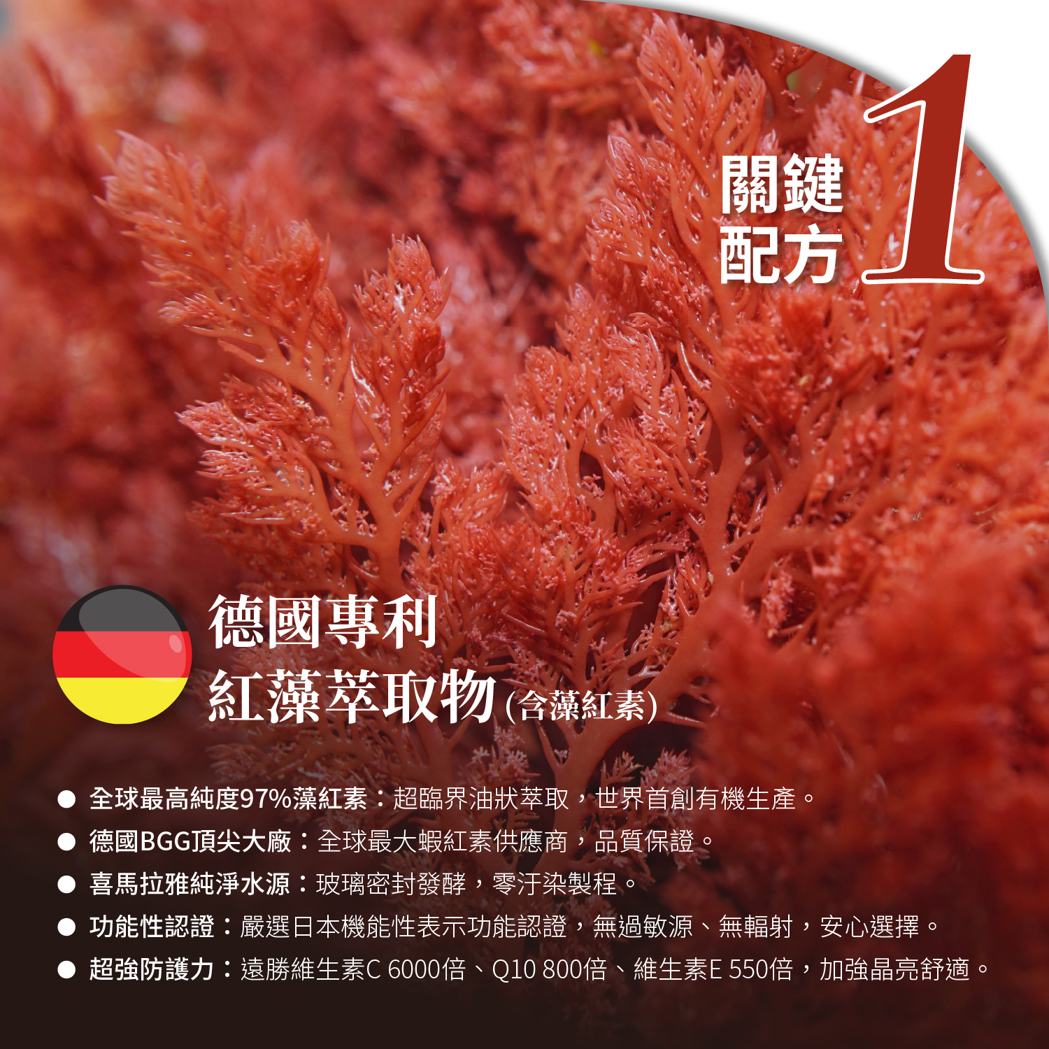▸ 德國大廠研製最高規格,市售頂規 4mg 蝦紅素