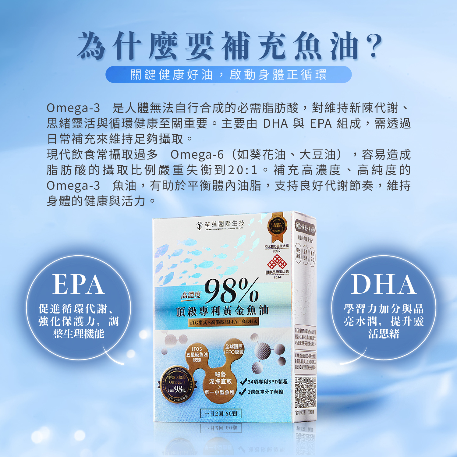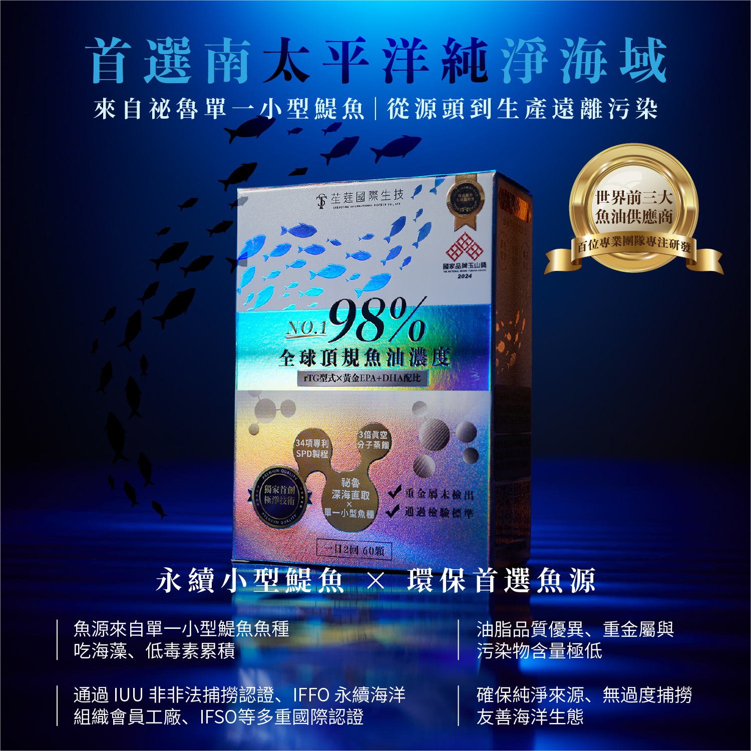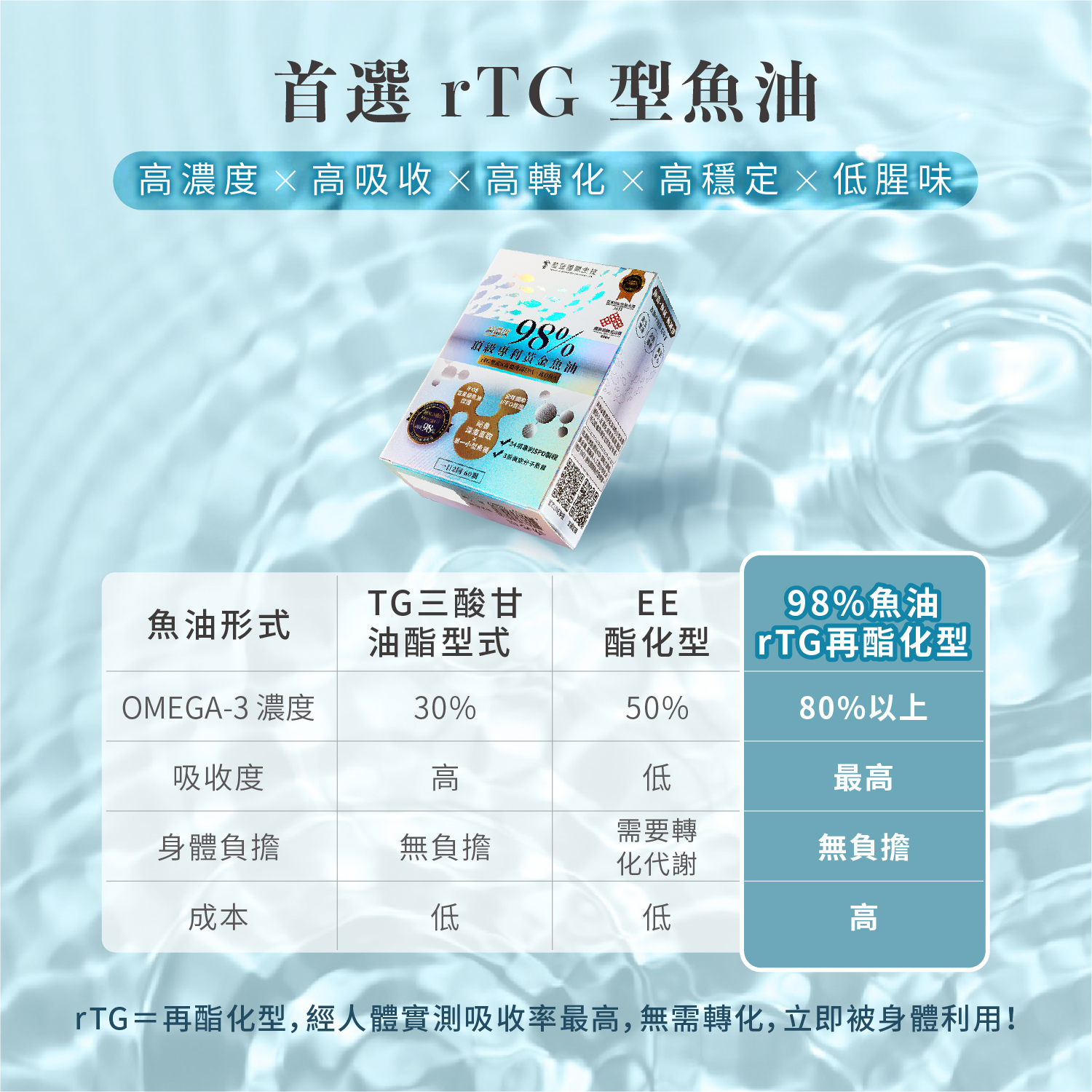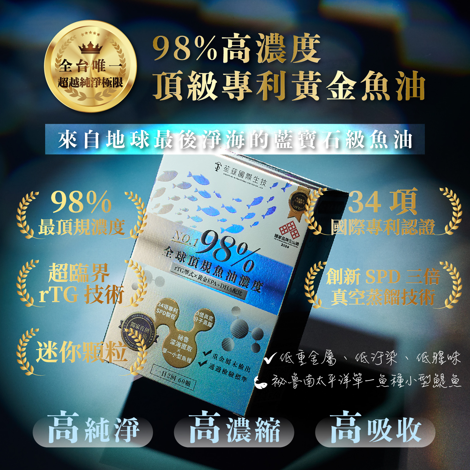 ★ 市售第一款高達98%純濃度(全台最高SGS檢驗98.01%)Omega-3 > 98%、EPA > 67%、DHA > 24%