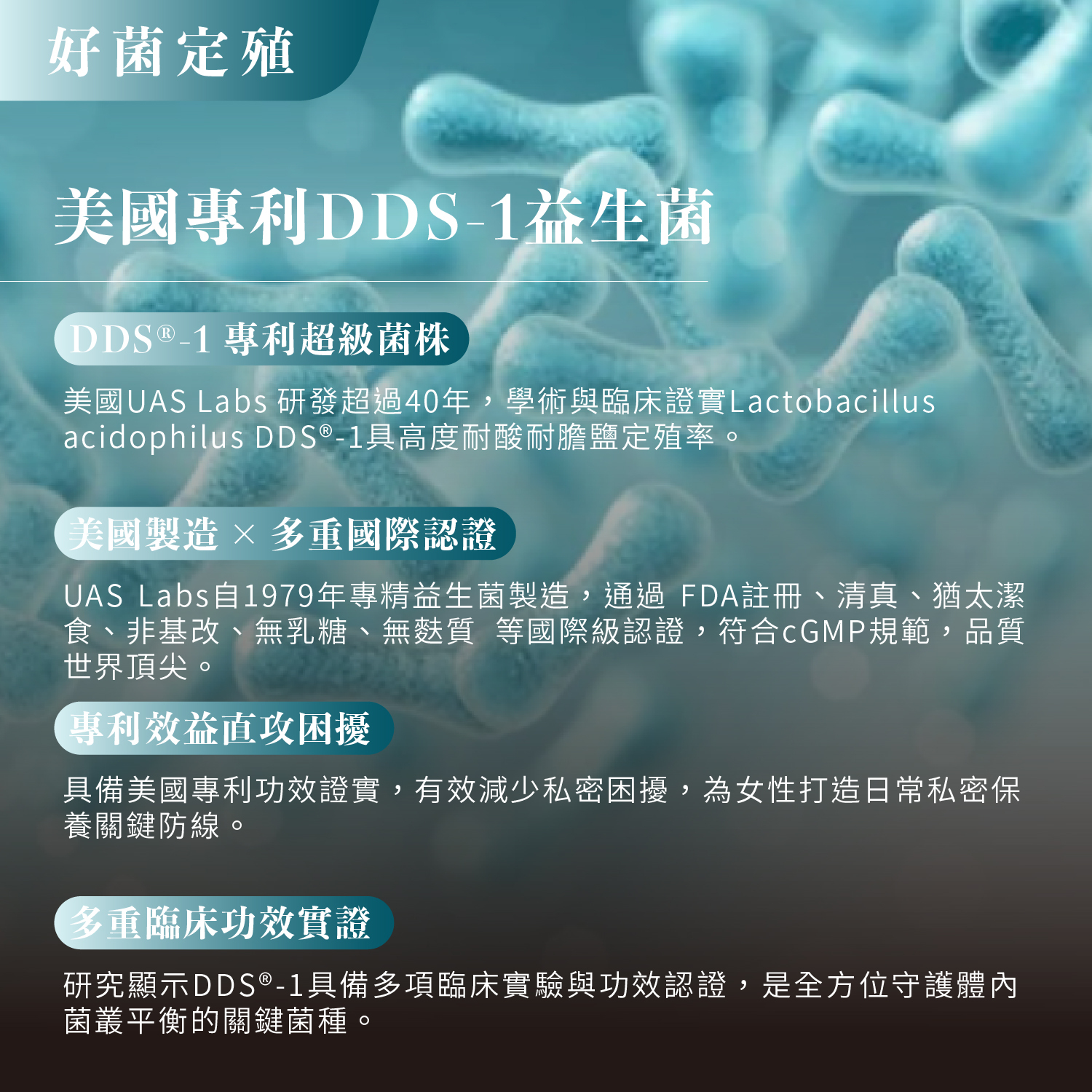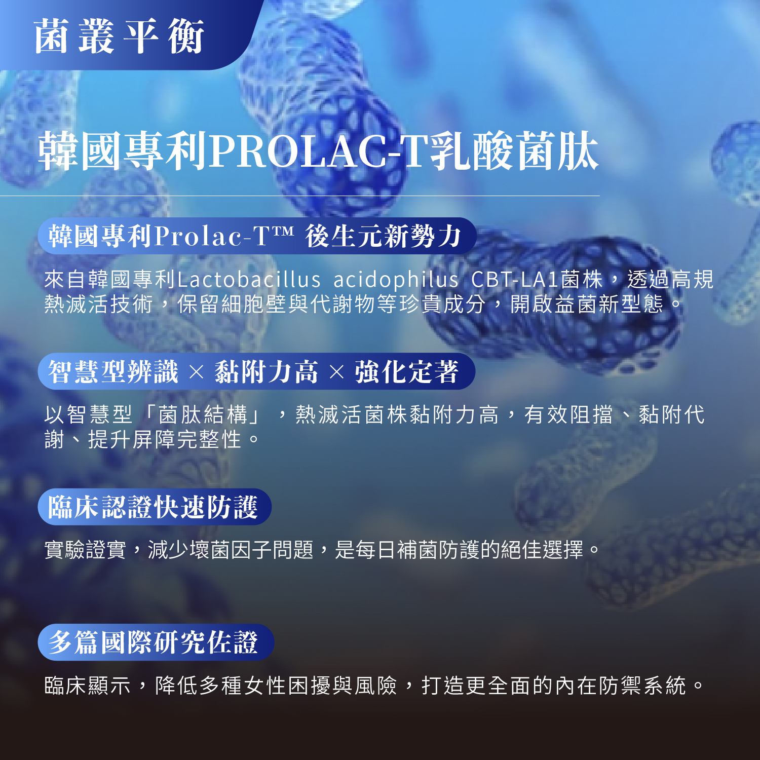 ▸ 美國專利DDS-1私密益生菌+韓國專利Prolac-T乳酸菌肽,三重菌相升級,守護菌叢平衡